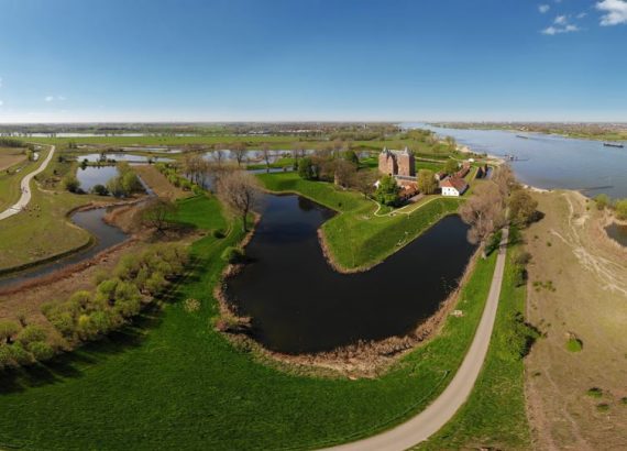 In het oer-Hollandse rivierenlandschap, waar Maas en Waal samenkomen, liet ridder Dirc Loef van Horne in 1358 zijn kasteel bouwen. Hij koos deze locatie bijna zes eeuwen geleden vanwege haar strategische ligging. Rond 1550 waren de middeleeuwse verdedigingswerken van Loevestein verouderd. Vanaf 1575 wordt op initiatief van Willem van Oranje begonnen met het moderniseren van de middeleeuwse verdedigingswerken rondom Loevestein. Eind 1589 worden een vijfhoekige omwalling met 3 bastions, een half bastion en een rondeel aangelegd. In 1651 wordt het middeleeuwse rondeel vervangen door een nieuw bastion. Sindsdien is de vorm van de vesting nauwelijks veranderd.